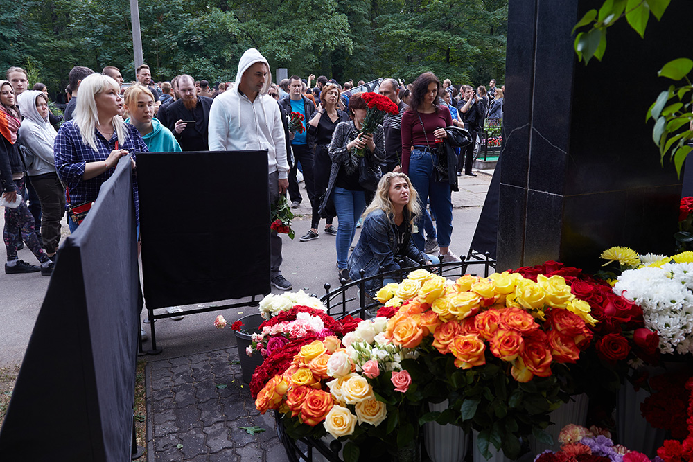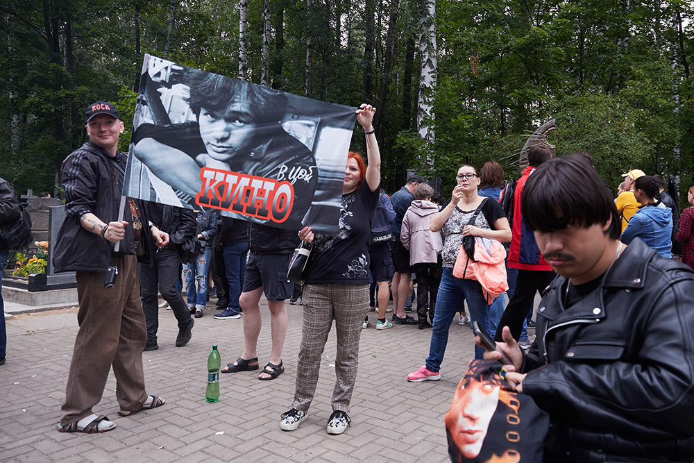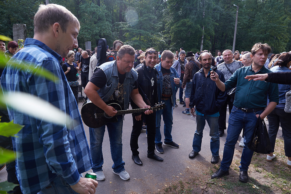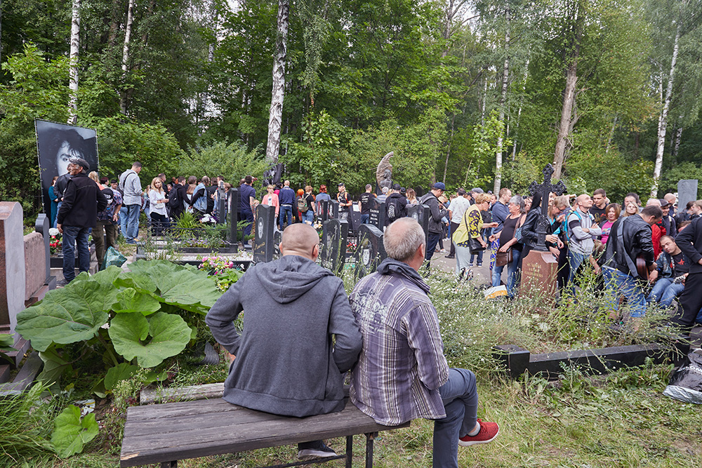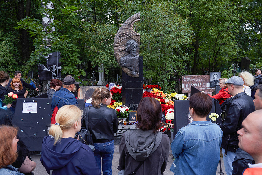 Днем 15 августа, в 30-ю годовщину смерти Виктора Цоя, у его могилы на Богословском кладбище собрались десятки людей. Они принесли цветы к мемориалу и спели хором песни группы «Кино».