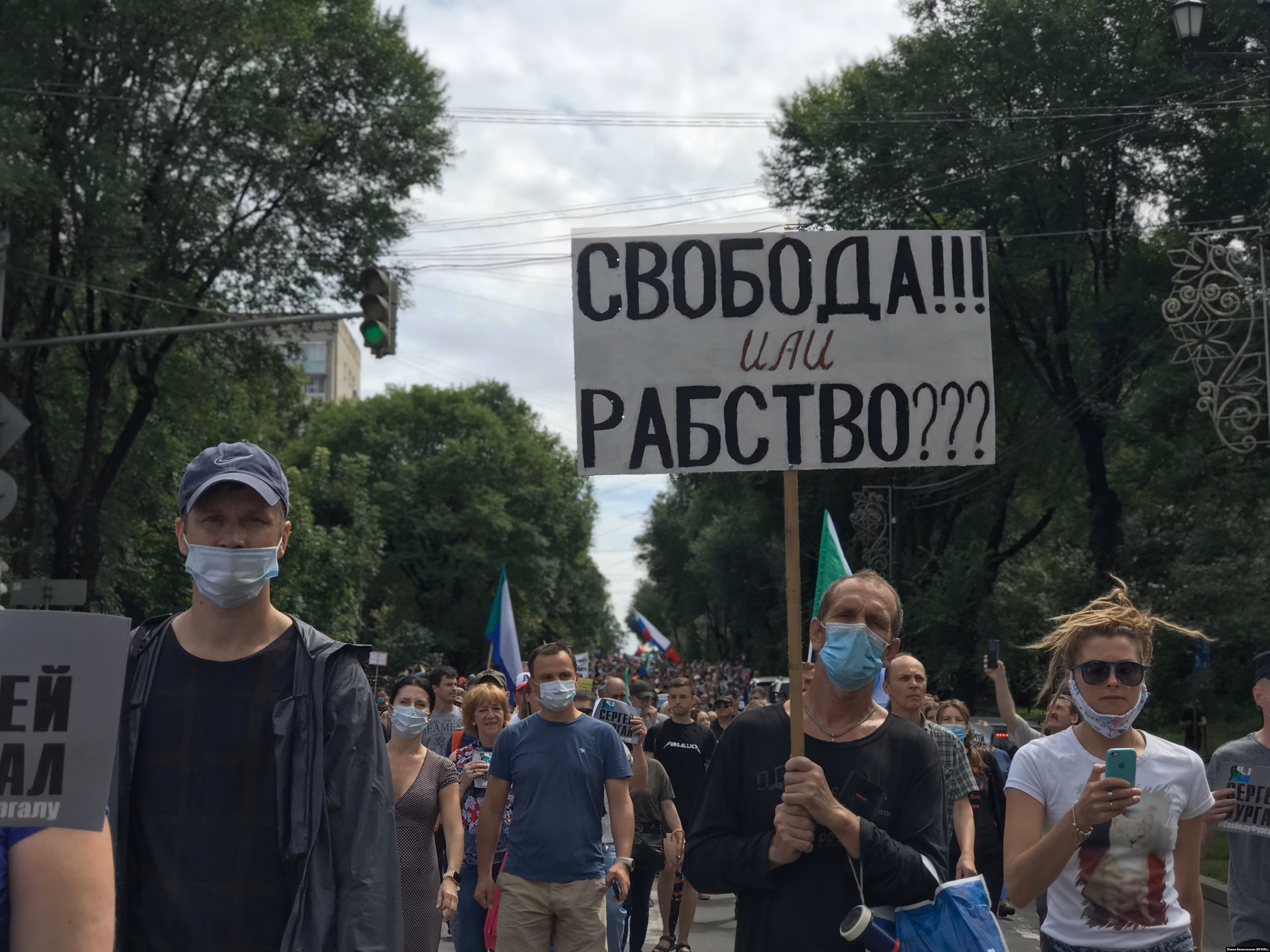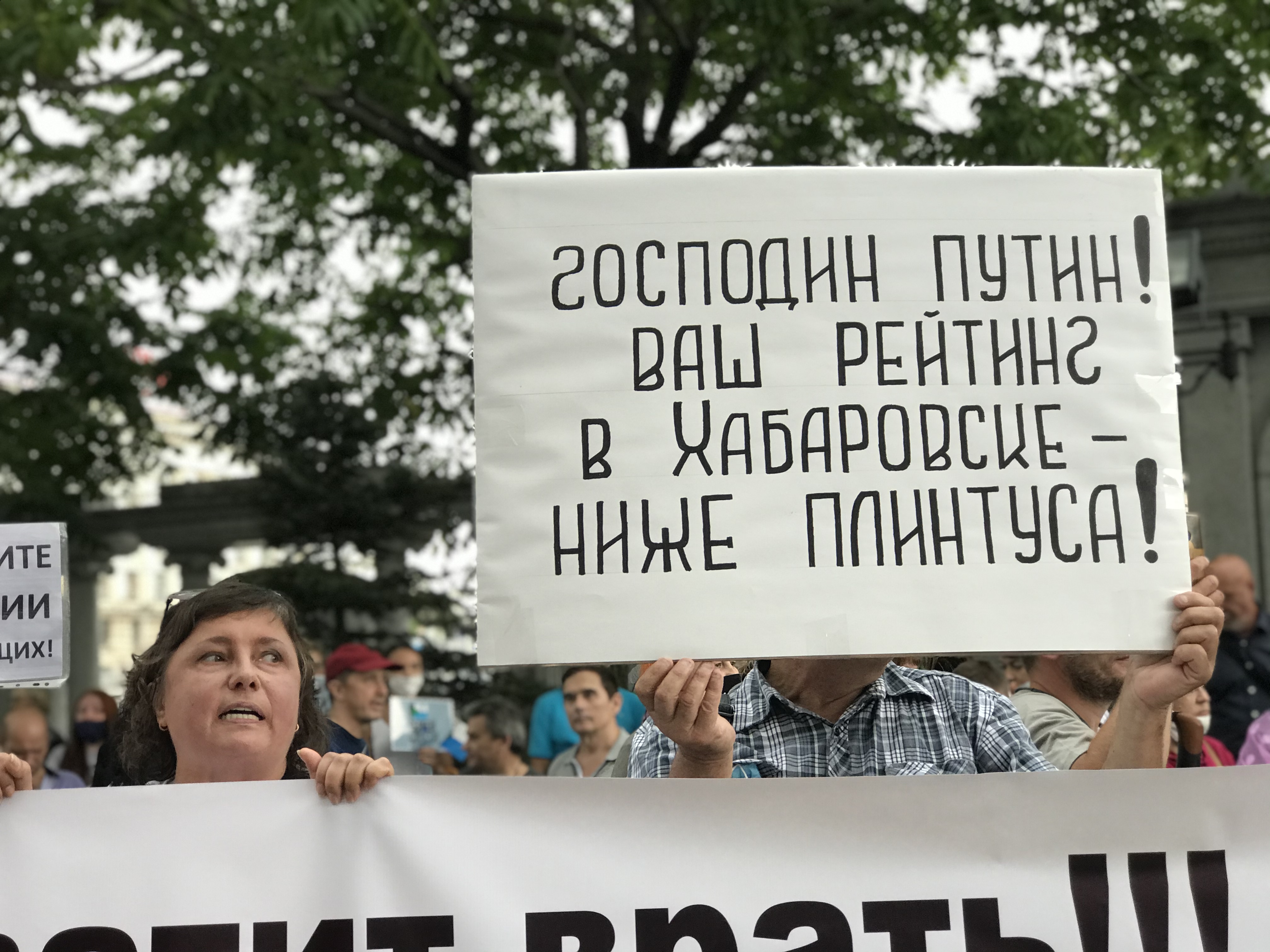 На этой неделе Дальний Восток посещал глава российского правительства Михаил Мишустин. В соцсетях обсуждали этот визит и высказывали предположения, что премьер посетит и Хабаровск. Многие надеялись, что Мишустин выйдет к протестующим. Но этого не случилось. Глава кабинета министров, посетив лишь Камчатский край, вернулся в Москву. Столь подчеркнутое игнорирование первыми лицами страны происходящего в регионе спровоцировало усиление антикремлевских настроений среди протестующих: требования отставки Путина и правительства стали звучать активнее и чаще, хотя еще в июле, на первых акциях, такие лозунги были скорее редким исключением. Сегодня вся площадь у здания краевого правительства скандировала "Долой царя!".