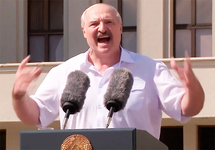 "Кто-то хочет новых выборов. За окно посмотрите! Самолеты в 15 минутах от нас. Натовские войска лязгают гусеницами у ворот Белоруссии. Литва, Польша, Украина приказывают провести нам новые выборы. Если мы пойдем у них на поводу, мы сорвемся в штопор. Мы погибнем как нация! Мы не должны стать санитарной зоной между Востоком и Западом! Мы не должны стать отхожим местом для Европы! Нам не нужны заморские правительства!" - сказал Лукашенко. "Нам предлагают солдат НАТО - чернокожих, желторожих и белобрысых", - добавил он.