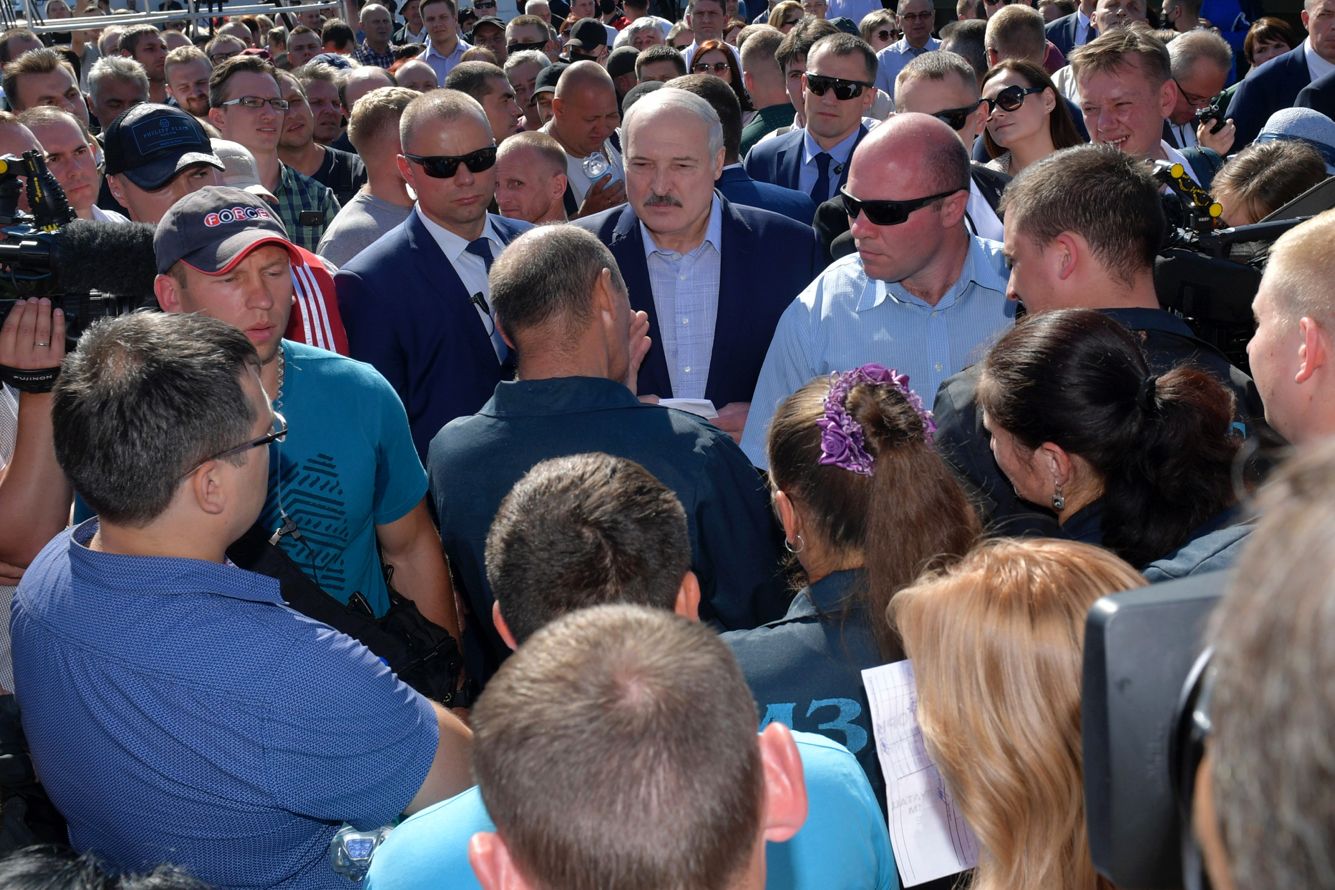 Александр Лукашенко выступил перед рабочими двух заводов. Сначала он прилетел на вертолете на Минский завод колесных тягачей. Там Лукашенко снова подчеркнул, что не допустит перевыборов, заявив, что «пока вы меня не убьете, других выборов не будет». Чуть позже он назвал условием для проведения выборов принятие новой конституции, отметив, что готов поделиться полномочиями, «но не под давлением и не через улицу». Выступление президента прерывалось свистом и криками «Уходи». Позже Лукашенко приехал на МАЗ, где предостерег рабочих: «Наступил тот рубеж, что если вы его переступите — Господь с вами. Если вы вывалите на улицы, мы перетерпим. Если вы пойдете ломить — ответите. Вот вам мужской разговор».