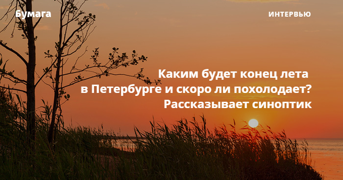 «Бумага» поговорила с синоптиком центра «Фобос» Михаилом Леусом о том, какой погоды ждать в Петербурге в конце лета.