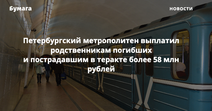 Петербургский метрополитен выплатил пострадавшим в теракте более 58 млн рублей