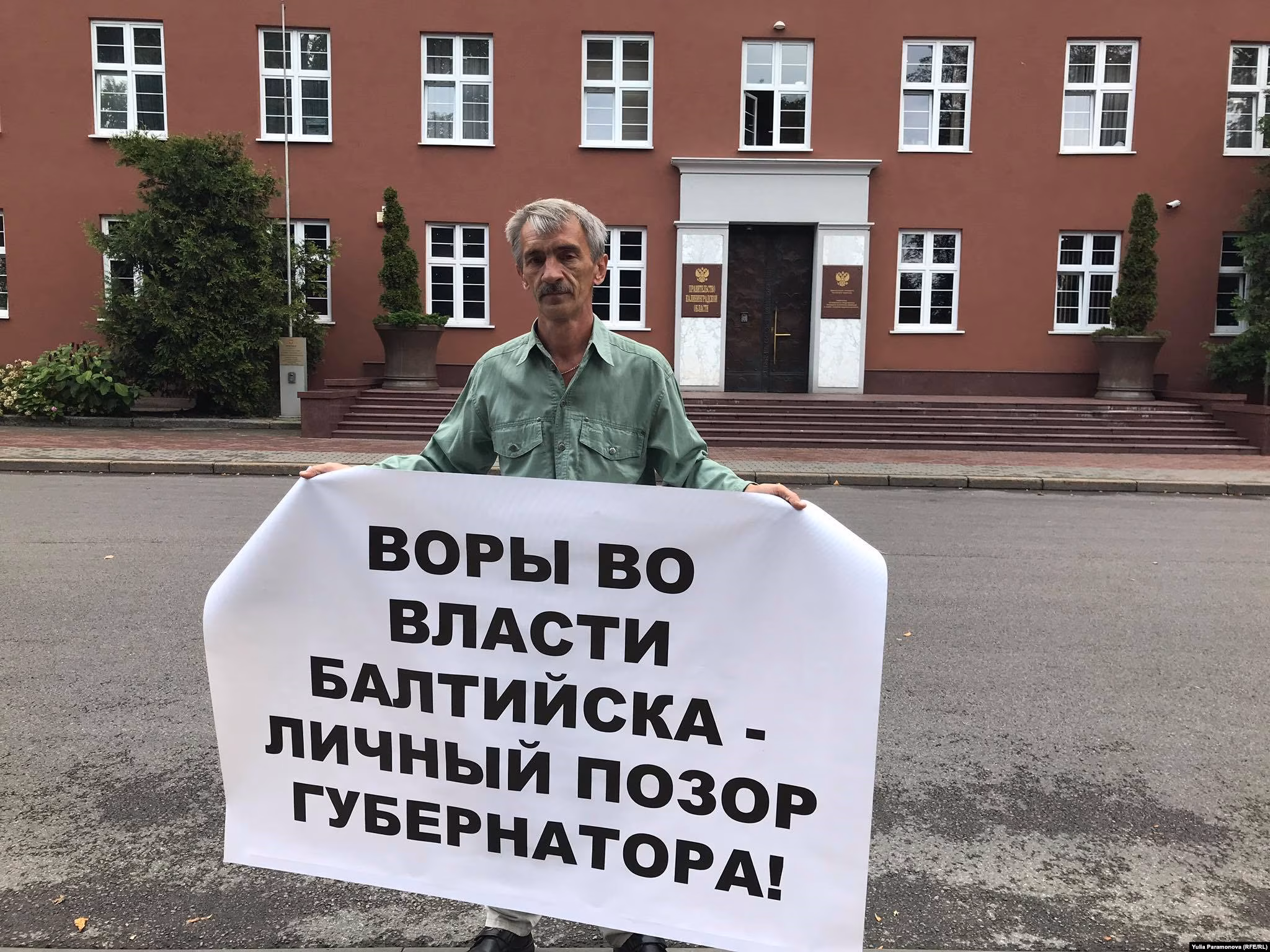 На пикет в свою защиту вышел и сам Дустин. По его мнению, последние пять лет в Балтийске происходит "банальное разворовывание города".