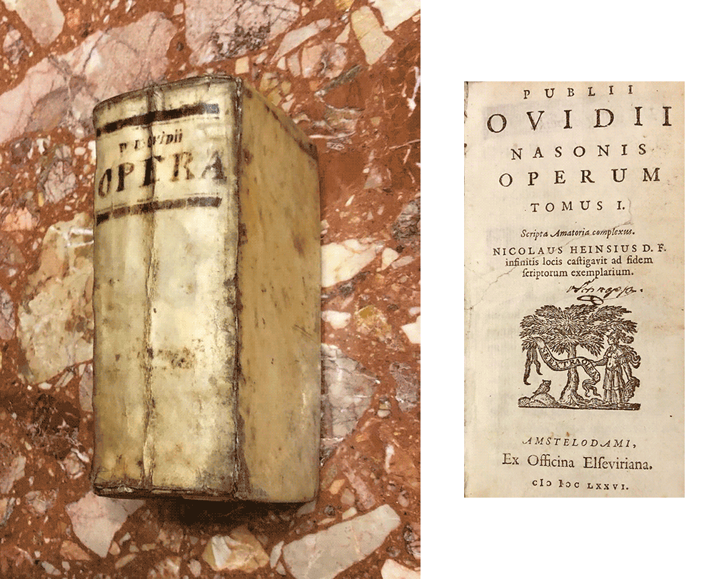 К сожалению, в моей библиотеке интересных изданий Овидия нет. Относительную библиофильскую ценность представляет только эльзевировский трехтомник 1676 года. Но он настолько маленький и напечатан таким мелким шрифтом, что использовать его по назначению практически невозможно.