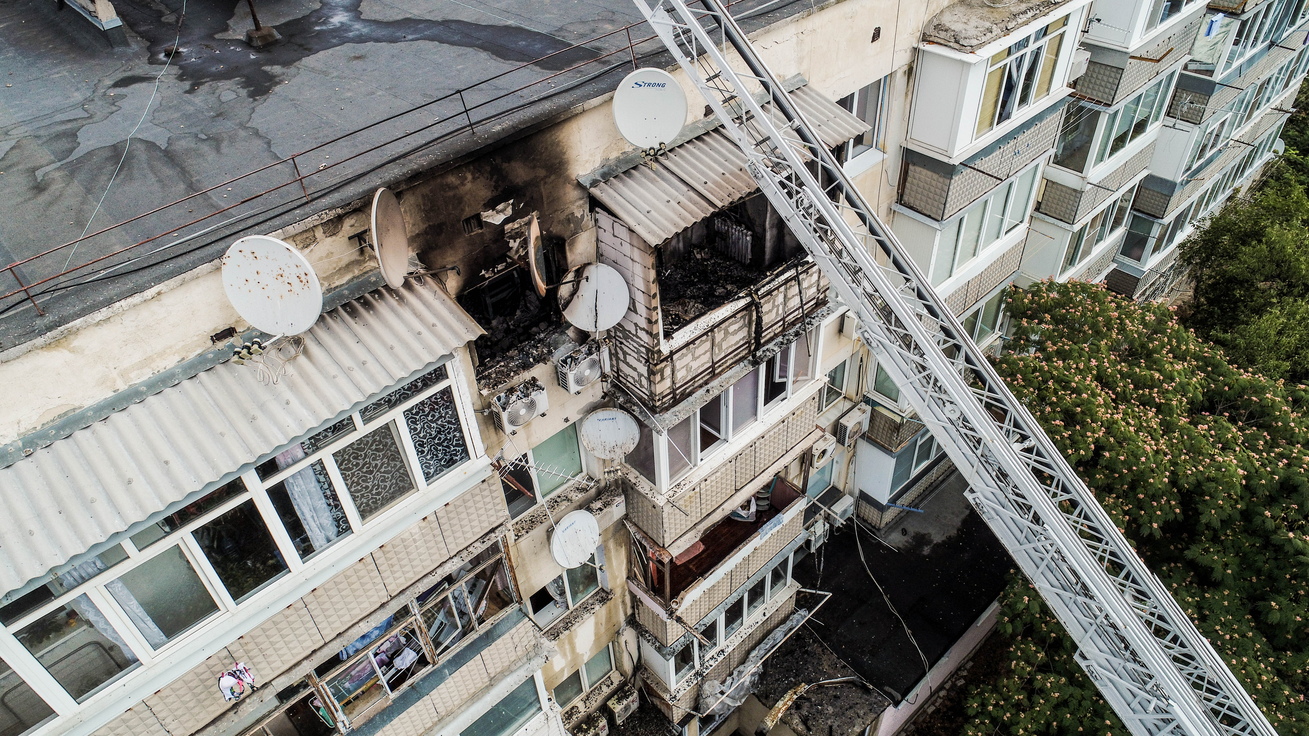 Источник Крым.Реалии в российском правительстве Севастополя, который из соображений безопасности попросил остаться анонимным, подтвердил, что пожар со взрывом произошел на балконе 5-го этажа дома №28 по улице Авиаторов. На балконе этого дома, по его словам, хранились газовые баллоны.