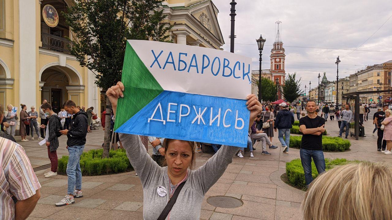 Другая участница акции Наталья Холманова сообщила, что на нее составили протокол за то, что она разворачивала баннер "Хабаровск, мы с тобой!".