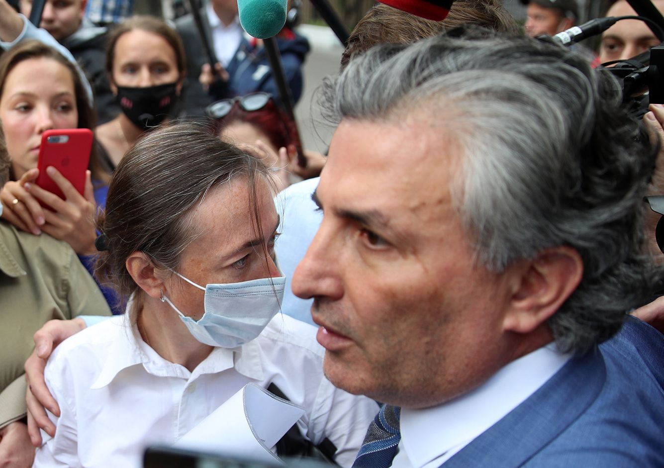 Тем временем приставы заводят Михаила Ефремова в здание суда под выкрики из толпы: «Миша, будь мужиком, признайся!»