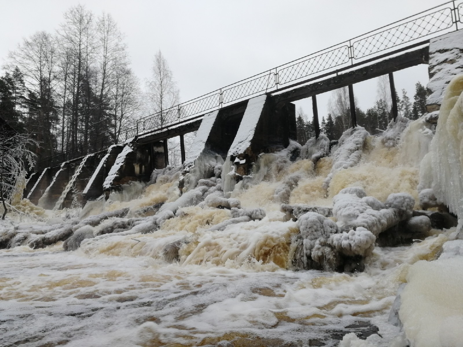 Чуть выше и ниже по течению от плотины есть стоянки, где можно перекусить, посмотреть на воду и послушать шум воды. Если отправиться вглубь заказника, то по бокам от дорог можно встретить каменные останки старых финских владений.