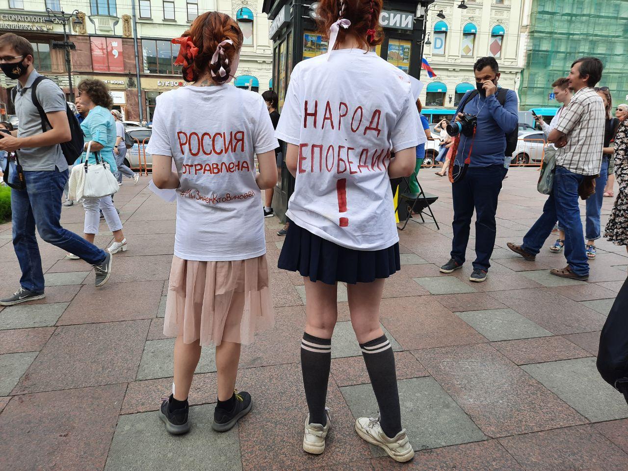 В Петербурге второй день проходит акция в поддержку основателя Фонда борьбы с коррупцией Алексея Навального, протестующих в Белоруссии и Хабаровске. Об этом сообщает корреспондент сайта Север.Реалии.