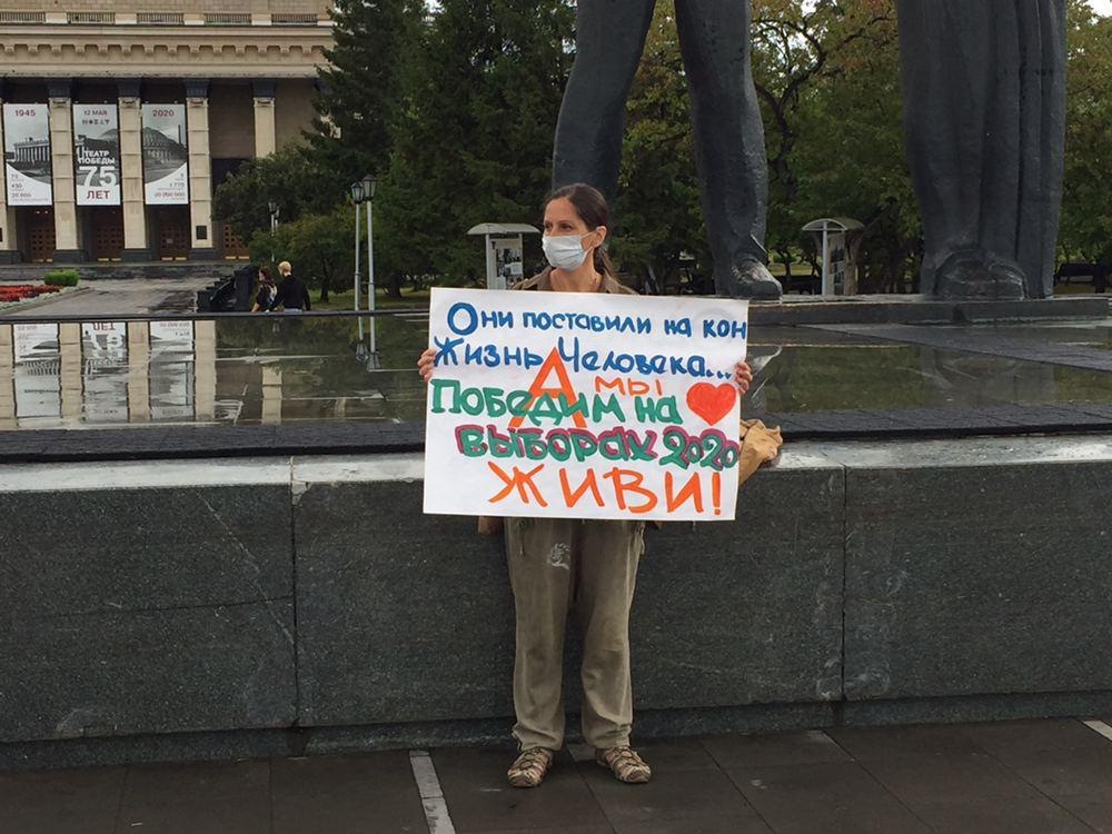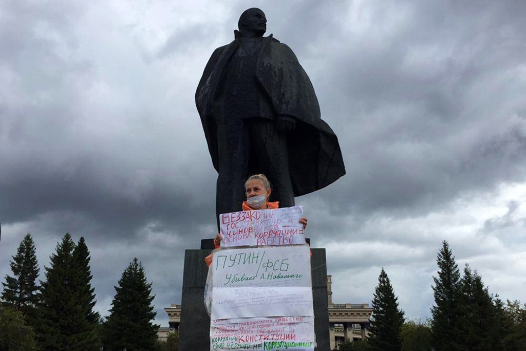 Пожилая женщина Зинаида Горбатенко пришла на площадь с плакатом «Путин/ФСБ убивает Навального». «Если бы даже кошку публично убивали, я бы вышла. Несколько дней убивают человека, который находится без сознания, все права его нарушают, как не выйти?» — отметила она в беседе с Тайгой.инфо.