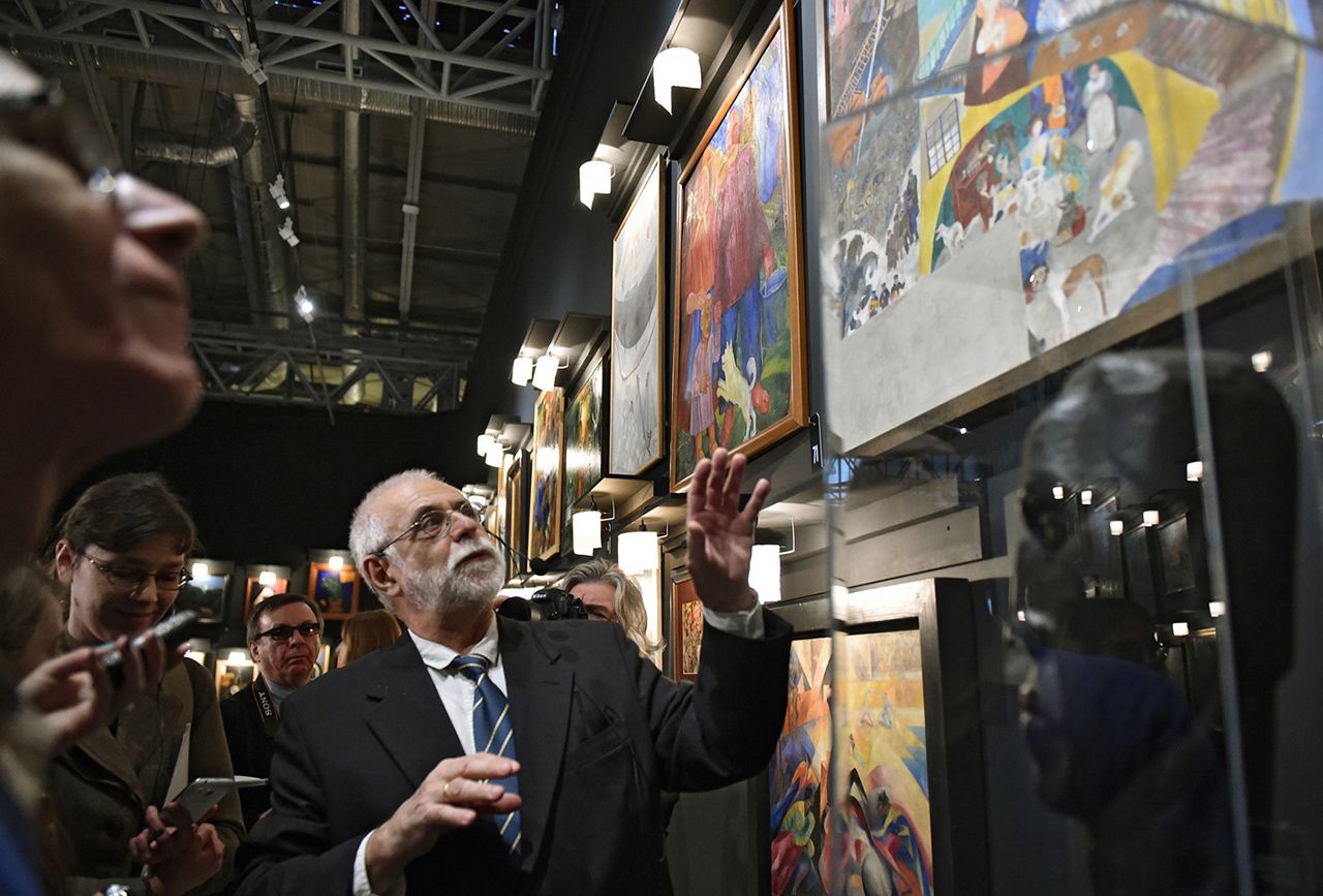 Сейчас все работы отреставрировали. Частично за счет государства, частично за счет частных инвесторов. Мы все будем показывать в идеальном виде, за исключением пейзажа Фешина — решили пока его не реставрировать, а выставить в таком виде, в каком он был найден. Картина будет в стеклянном ящике.