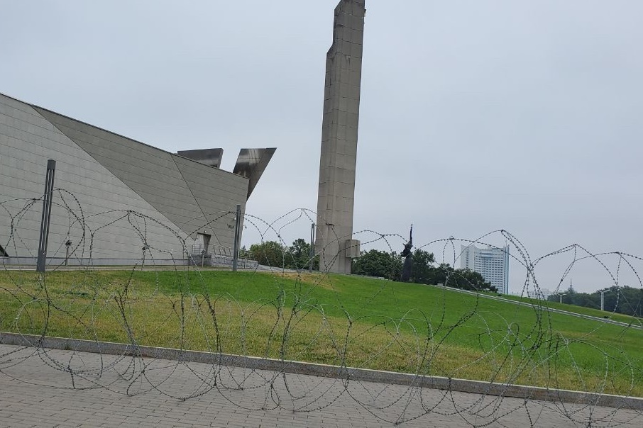 После заявления минобороны об охране мемориалов вокруг одной из стел в Минске военные растянули колючую проволоку, передает Telegram-канал «Чай з малинавым варэннем». Корреспондент Tut.by сообщил, что его задержали возле стелы, но через несколько минут отпустили «с наказом не возвращаться, а то задержат окончательно».
