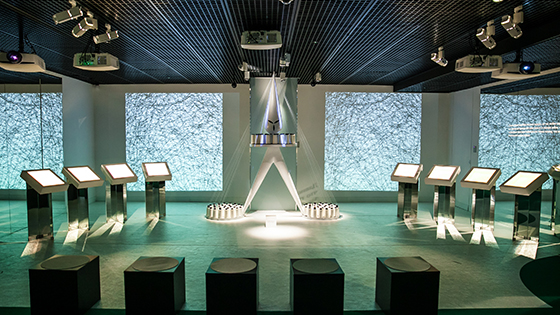 Единственной, по сути, исторической экспозицией среди наших проектов был «Свободный полет». Здесь временная спираль, с которой мы работали, начиналась с 1400 года в фильме «Андрей Рублев» и через углубленные в историю изыскания Плавинского переходила в современную космическую эпоху.
