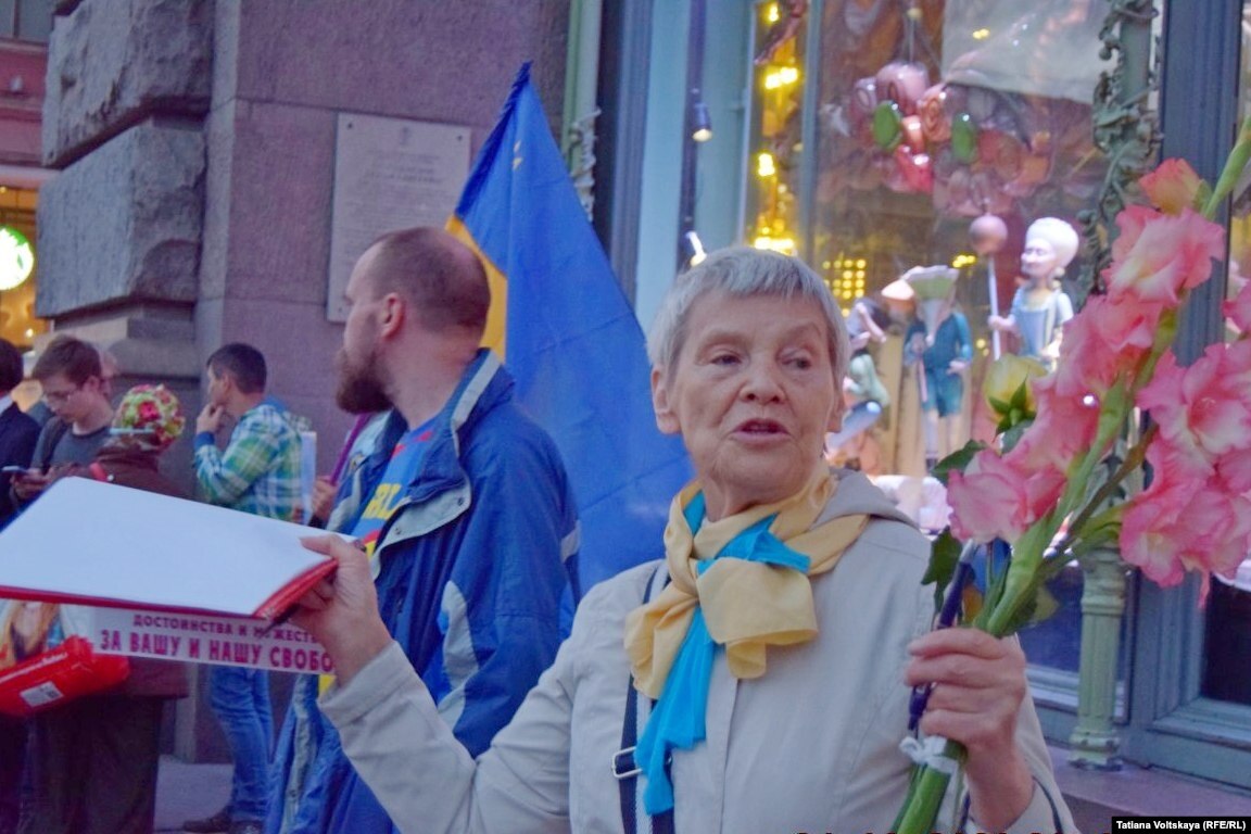 В Петербурге группа гражданских активистов из "Мирного сопротивления" поздравила Украину с Днем независимости, сообщил корреспондент Север.Реалии.