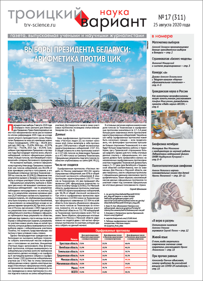 ТрВ № 17 (311) за 2020 г.: Выборы президента Беларуси: арифметика против ЦИК