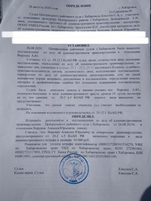 По мнению суда, Ворсин на митинге 15 августа в поддержку экс-губернатора Сергея Фургала нарушил правила участия в публичном мероприятии.