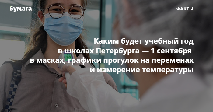 «Фонтанка» со ссылкой на неназванные источники пишет, что в случае болезни одного из учеников на карантин и вместе с ним дистанционное обучение отправят весь его класс. В комитете по образованию Петербурга «Бумаге» пояснили, что детей с повышенной температурой и признаками коронавируса будут изолировать в специальном помещении до прибытия родителей или бригады скорой помощи. Решение о карантине будет принимать Роспотребнадзор.