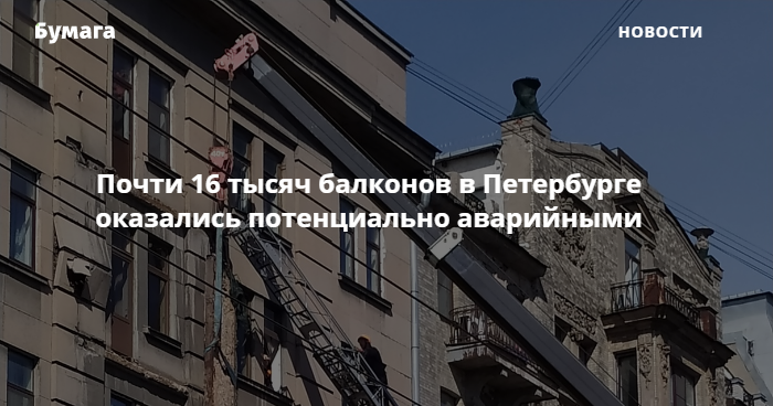 В Петербурге во время инвентаризации выявили 16 тысяч потенциально аварийных балконов. Об этом сообщает «Петербургский дневник» со ссылкой на председателя жилищного комитета Виктора Борщева.