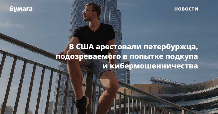 В Лос-Анджелесе 22 августа по подозрению в попытке подкупа с целью совершить киберпреступление арестовали 27-летнего россиянина Егора Крючкова. Об этом сообщает пресс-служба министерства юстиций США.