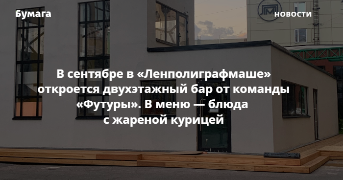 В начале сентября в кластере «Ленполиграфмаш» откроется двухэтажный бар от команды «Футуры». Об этом «Бумаге» рассказал основатель бистро Илья Литвяк.