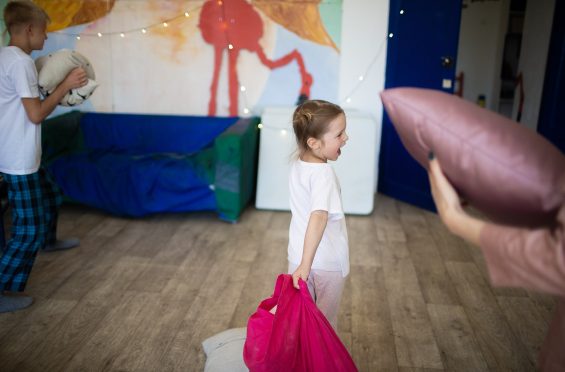 Амелия показывает маску кота, которую она сделала на занятииФото: Светлана Булатова Смена в городском лагере длилась всего неделю — небольшой срок, но даже за такое короткое время дети подружились друг с другом, привязались к волонтерам и тьюторам, смогли остаться на целый день без родителей. В лагере были занятия по рисованию, музыка и танцы у Петропавловской крепости, прогулки и просмотры мультфильмов, выезды на природу и ферму. В последний день смены случилась самая настоящая пижамная вечеринка, с битвой подушками и шоу мыльных пузырей.