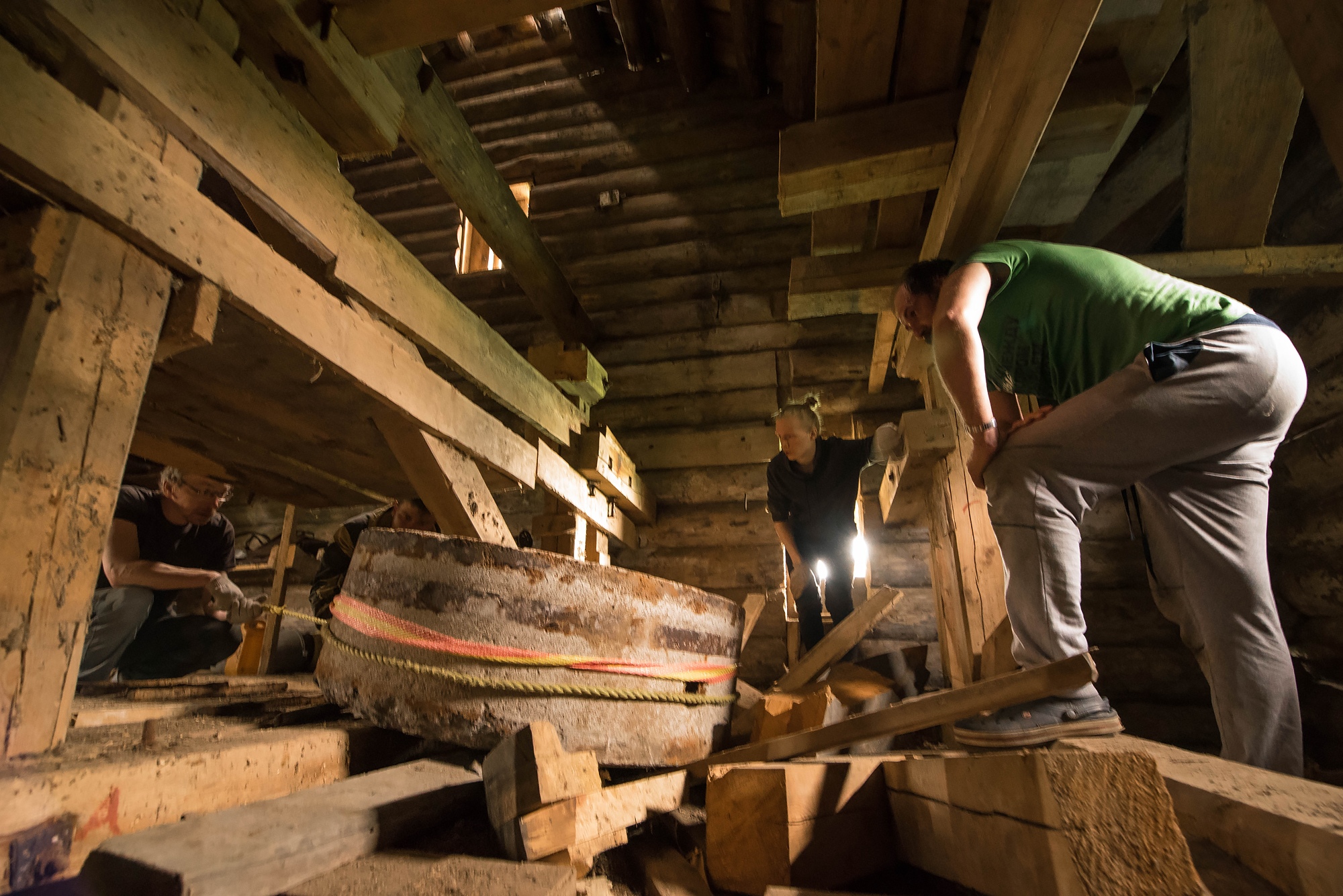 Реставрация самой мельницы – это самая слабая часть проекта. Поскольку мельница – объект культурного наследия и находится в реестре памятников, то предполагает реставрацию государственную. Когда очередь и госфинансирование дойдет до работ над мельницей в Ровдино, никто не знает – пока волонтерам удалось ее законсервировать, чтобы внутрь не попадала влага и не разрушала и так сгнившее дерево.