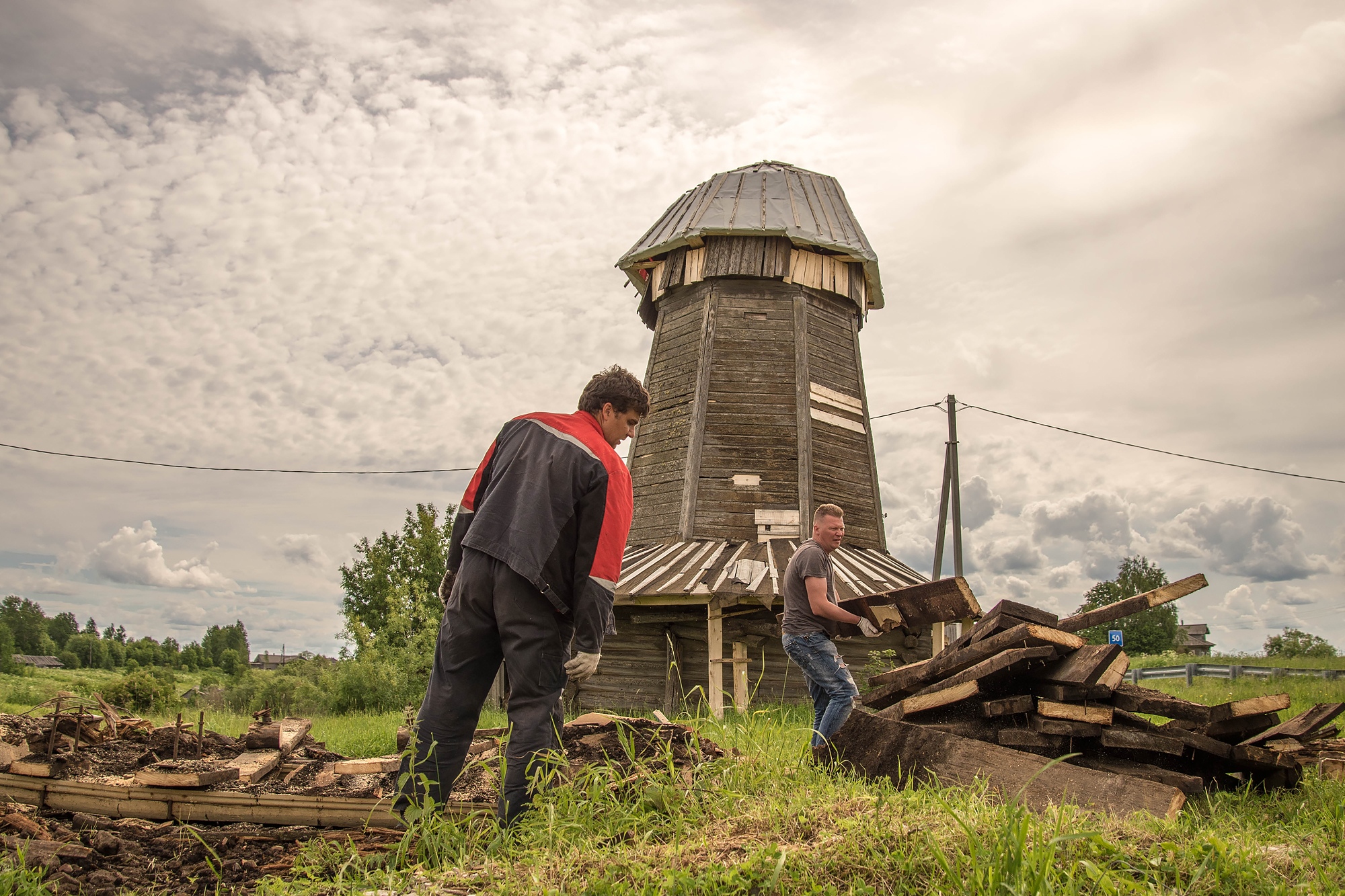 Помогают в проекте "Ровдина Гора" Николаю и Полине Выморковым волонтеры и местные жители, среди которых потомки корабельного мастера Степана Негодяева, благодаря которому в деревне и появилась мельница.