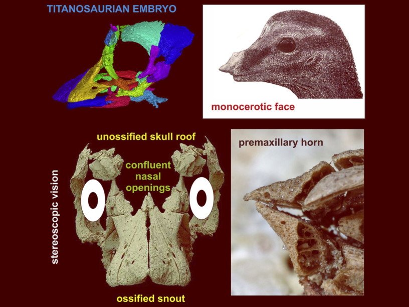 Палеонтологи из Словакии, Швеции, Аргентины и США изучили хорошо сохранившийся череп эмбриона динозавра из древней кладки яиц, найденных 25 лет назад в Аука-Мауэво (Патагония). Они впервые построили трехмерную реконструкцию черепа эмбриона и обнаружили ряд необычных черт его строения.