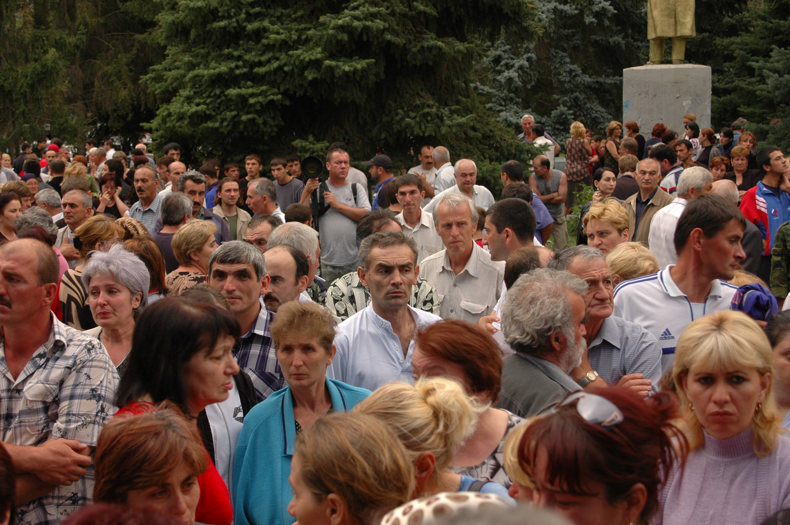 Город выглядел вымершим: казалось, все живые собрались у Дома культуры. На заполненной людьми площади царила звенящая тишина, прерываемая лишь новостными сводками, доносящимися из постоянно включенных радиоприемников: находясь буквально в сотне метров от захваченной школы, люди узнают о происходящем там лишь из сводок радио и ТВ. Почти у каждого, кто на площади, там, в школе – или родные и близкие, или друзья и знакомые. Вторые сутки продолжается мучительная пытка неизвестностью, люди молчаливо ждут, надеясь, что к ним наконец выйдет "власть", выйдет президент республики Александр Дзасохов – и всё им скажет, всё разъяснит… Так и не вышел, не сказал, не разъяснил…