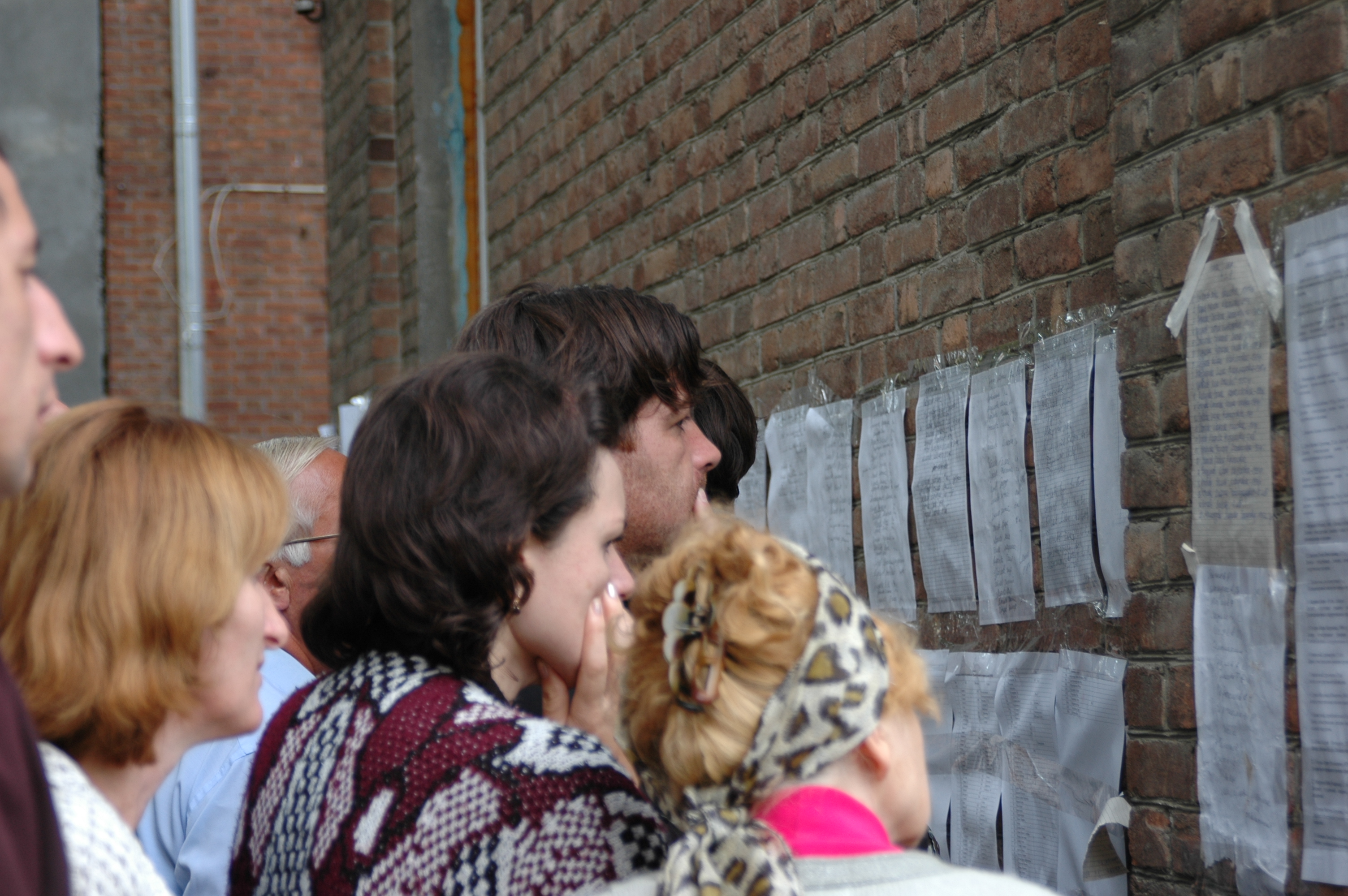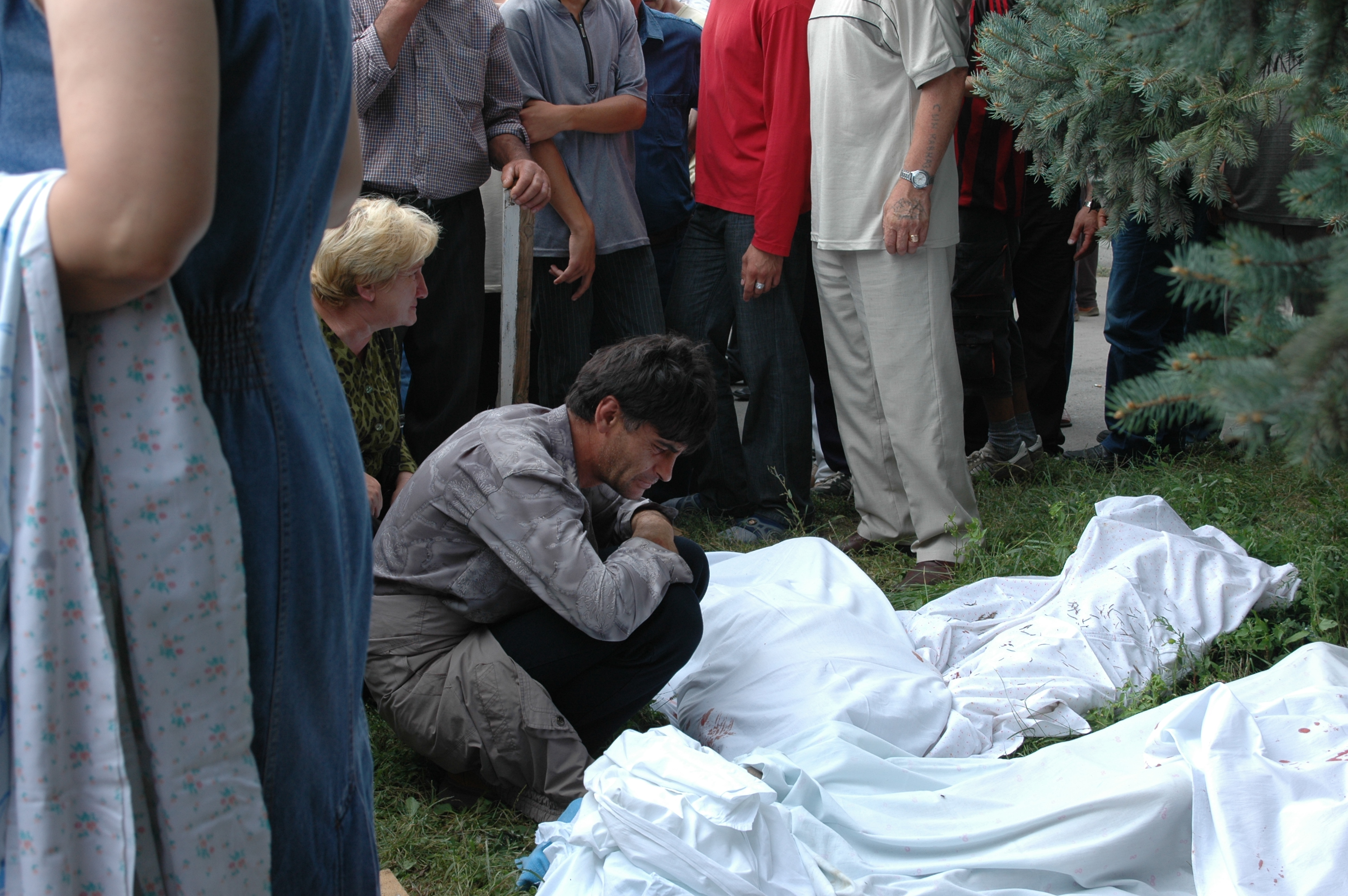 Утро 4 сентября 2004-го. У больницы вывешены листы с именами поступивших туда раненых. Люди ищут в этих списках имена своих родных: пусть раненые, зато живые…
