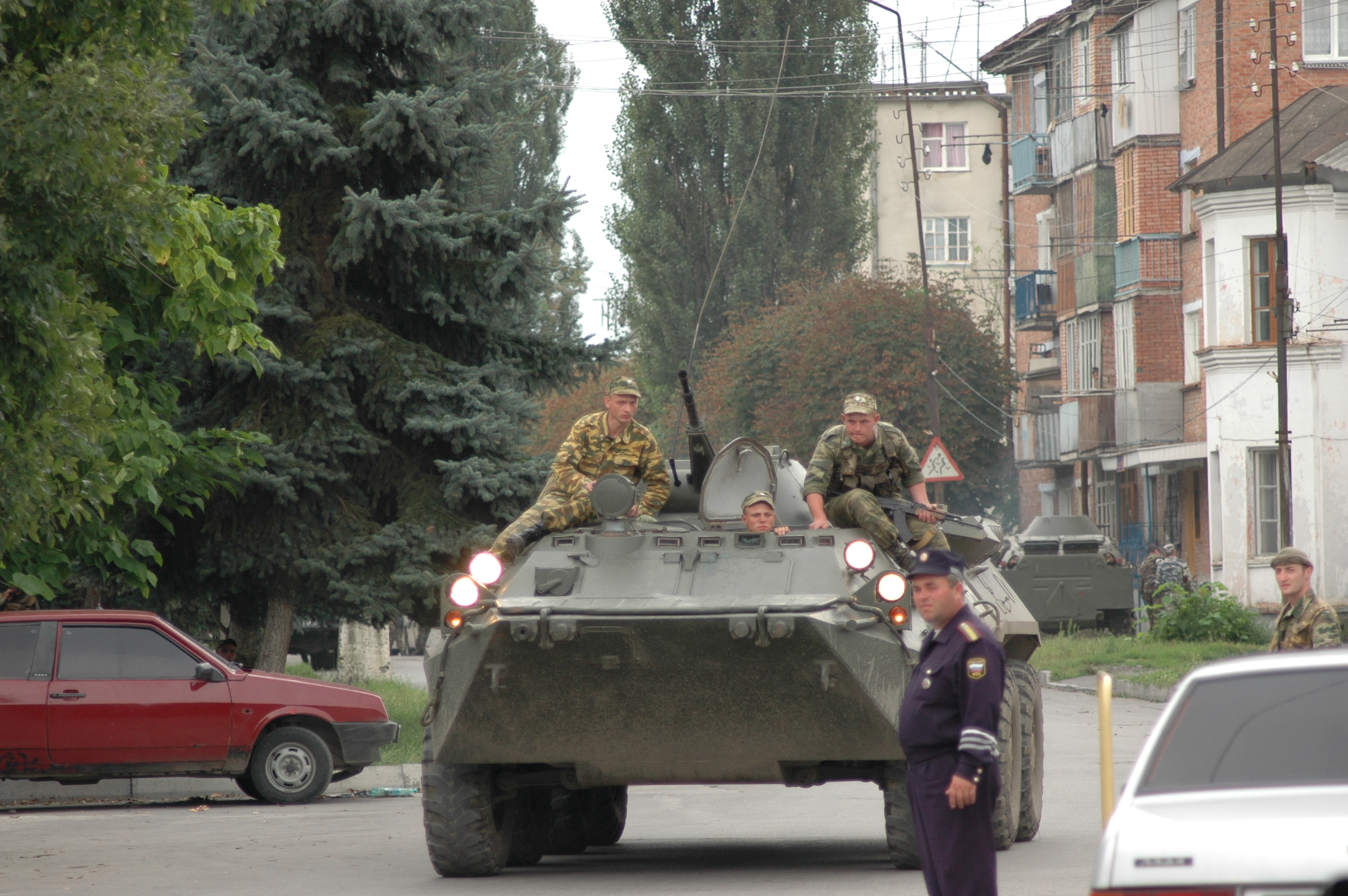 2 сентября 2004 года. Беслан патрулируют милиционеры в разномастном обмундировании, с нашивками разных СОБРов и ОМОНов, много кордонов солдат 58-й армии. За все дни пребывания в Беслане среди всей этой массы военнослужащих ни разу не видел ни одного офицера или хотя бы прапорщика. Везде были только солдаты-срочники и сержанты-контрактники: растерянные, совсем не понимающие, что происходит, явно не знающие, что им надо делать. Время от времени по улице Октябрьской, на дальних подступах к школе бесцельно маневрируют БТРы, то въезжая в зону оцепления, то выезжая оттуда. Шли вторые сутки теракта, но было видно, что никакого единого руководства, никакого реально работающего штаба не существовало, никто просто не знал, что и кому надо делать.
