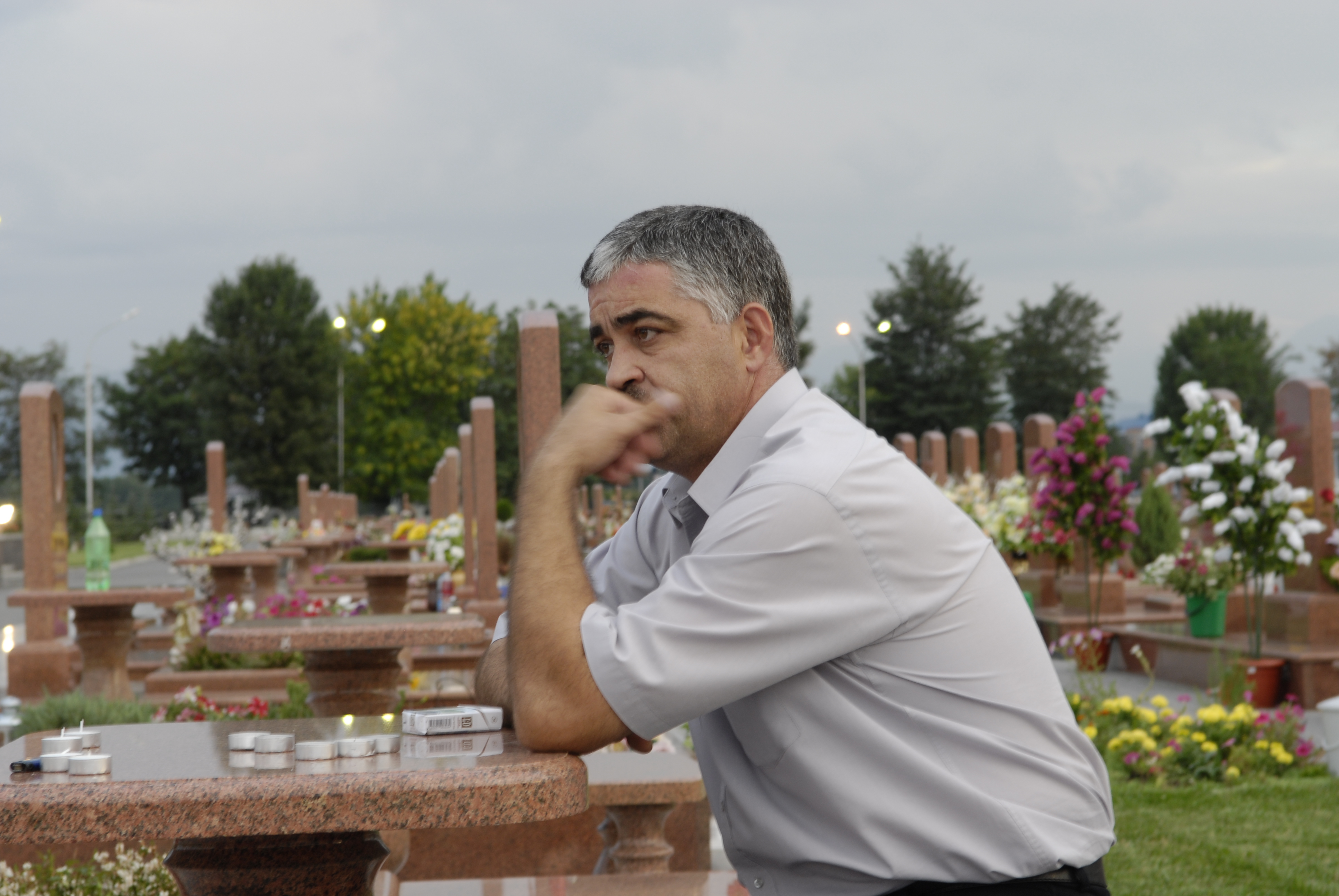 Саша Гумецов поминает дочь Азу. Фотография 2007 года