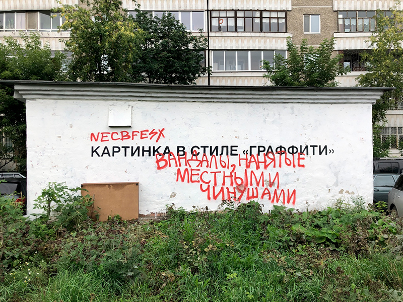 © Григорий Постников Команда Hot Singles in Your Area для фестиваля «Стенограффия». Екатеринбург, 2020 Еще один момент, обращающий на себя внимание, — разобщенность художественного сообщества. Несмотря на то что «улица для всех, это самое независимое пространство, где каждый может делать что хочет», на практике оказывается, что это не совсем так. Да, есть определенная степень свободы, но, чтобы стать частью сообщества и успешно реализоваться, надо знать подводные камни, грамотно лавировать в потоке и четко вписываться в понятие «трушности». Идеальная комбинация — долгие годы независимых граффити за спиной и респект сообщества, знание стратегий по избеганию «зашквара», внимательный подход к сотрудничеству. Чем больше становится сцена уличного искусства, тем сильнее нарастает этот конфликт, что дает основания предполагать, что в его основе лежат конкурентная борьба и зависть. Эти понятия близки субкультурным граффити, где берут начало многие российские уличные художественные практики. Сегодня возможностей становится больше, значит, выше и конкуренция.