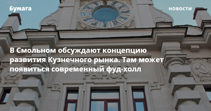 Смольный вернулся к обсуждению будущего Кузнечного рынка. Планируется, что там появится современный фуд-холл. Концепцию развития рынка разрабатывает подведомственное комитету имущественных отношений учреждение, сообщает «Фонтанка».