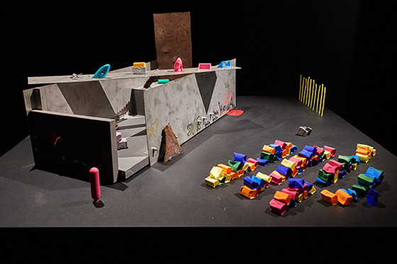 © Михаил Вильчук Валерий Казас. 1:100, объекты. 2020 Главный опыт здесь — это опыт личный, а не коллективный. Он весьма разнообразен и часто универсален. Мы видим художников, которые создают стены-высказывания о функции искусства, когда тяжесть материала против банальной игры цвета обнаруживает неразрешимость требуемых задач (инсталляция Игоря Лазарева «Свобода быть художником» (2020)). Которые виртуозно проектируют несуществующие здания музеев современного искусства вместе с экспонатами (объекты Валерия Казаса «1:100» (2020)). Или транслируют всеобщее ощущение нереальности полированно-стеклянных сред современных городов с их удаленным от природы параметрическим проектированием (видеоинсталляция «Прогулка» Алены Терешко (2020)).