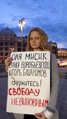 Щетинина вышла на акцию в поддержку активистов «бессрочного протеста», против которых завели дело о вандализме. Полицейские прервали пикет и отвели девушку в ОП по району Китай-город. Ей вменяют статью о нарушении «режима повышенной готовности» (ст. 20.6.1 КоАП).