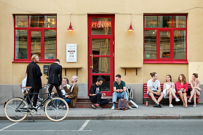 Место: тротуар перед баром Redrum