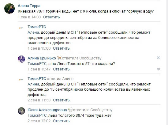 В ТомскРТС пояснили, что срок отключения воды в 14 дней относится только к профилактическому ремонту, не связанному с заменой участков теплотрасс и конструктивных элементов. Сроки проведения таких работ законодательством не регламентируются – все зависит от их объема и сложности. Участков, нуждающихся в проведении работ капитального характера, в Томске очень много, поскольку износ тепловых сетей города составляет более 80 %.