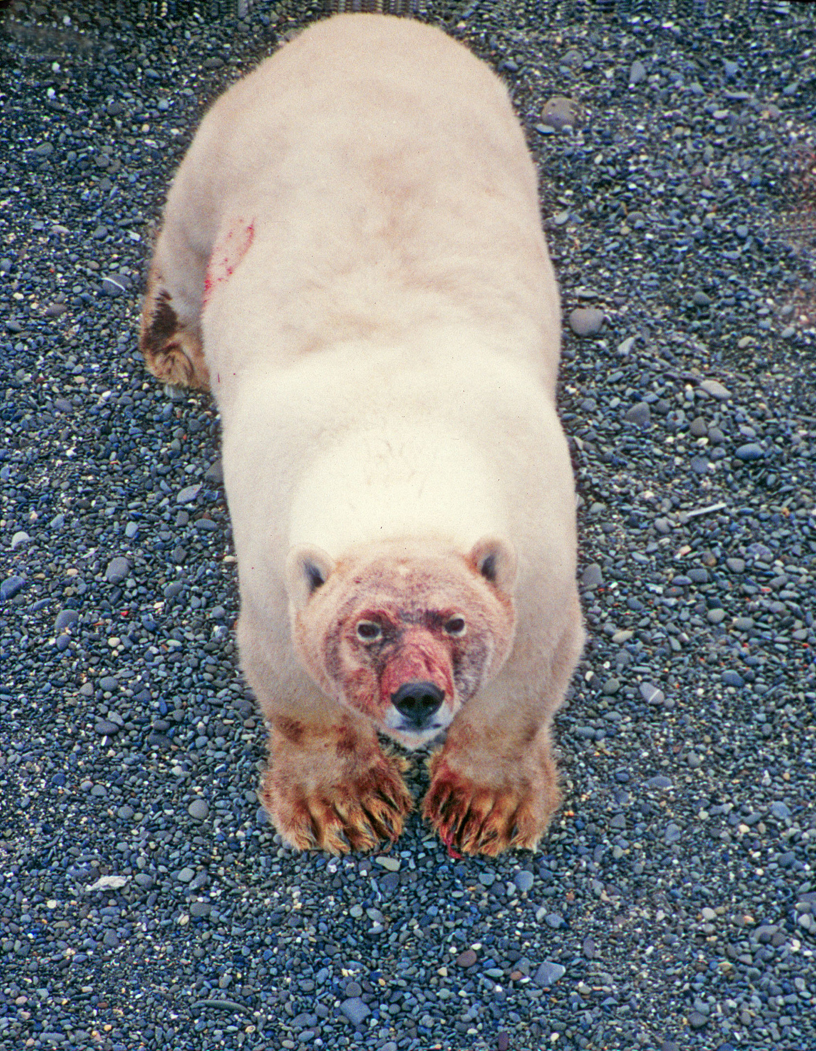 На меня белые медведи нападали 15 или 16 раз. То есть нос к носу я встречался с ними сотню раз, а может быть, и больше. А 15 или 16 раз — это именно когда медведь меня атаковал: не просто подбегал меня понюхать, а реально хотел сделать мне больно. Каждый раз их удавалось остановить — шипением, палкой и выстрелом из ракетницы.