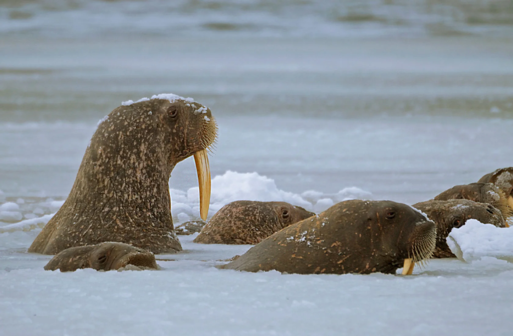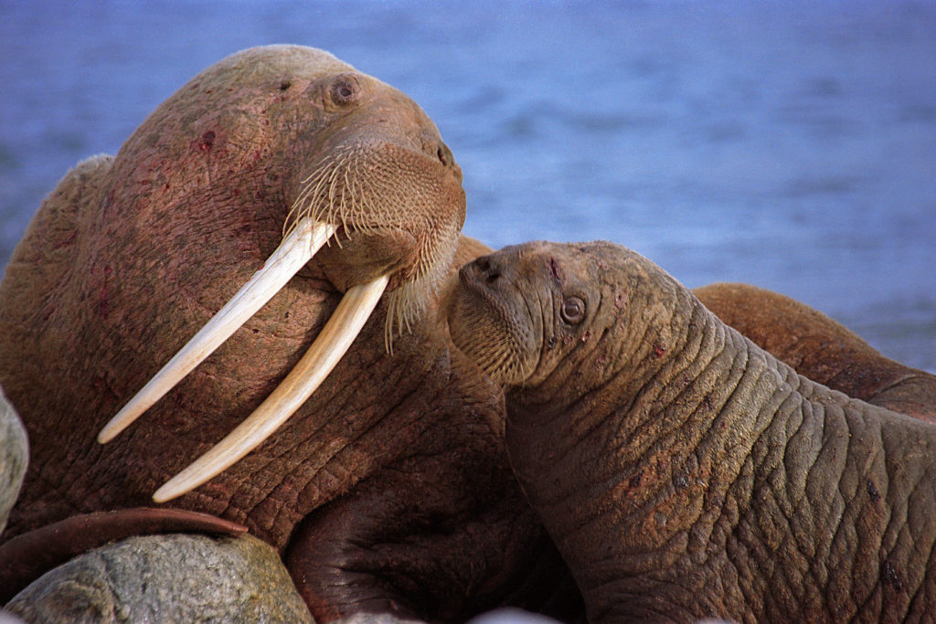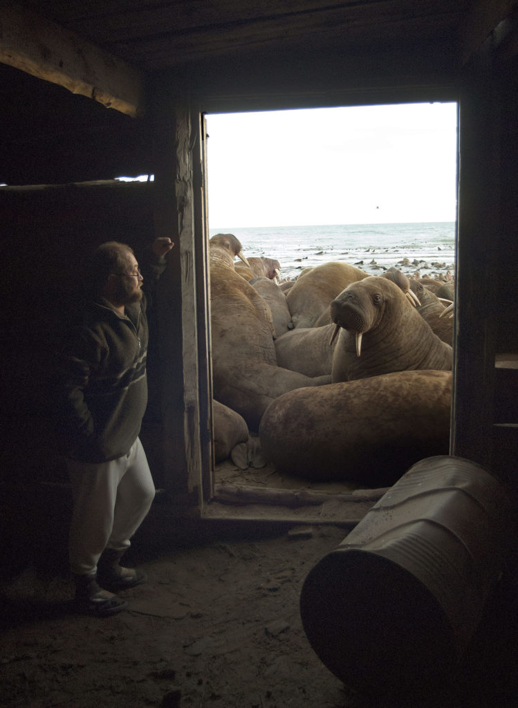 Зрелище не для слабонервных: десятки тысяч моржей сгоняются с лежбища ради двух десятков маленьких моржат. Если мать не отпускает моржонка, ее закалывают — весь прибой в крови