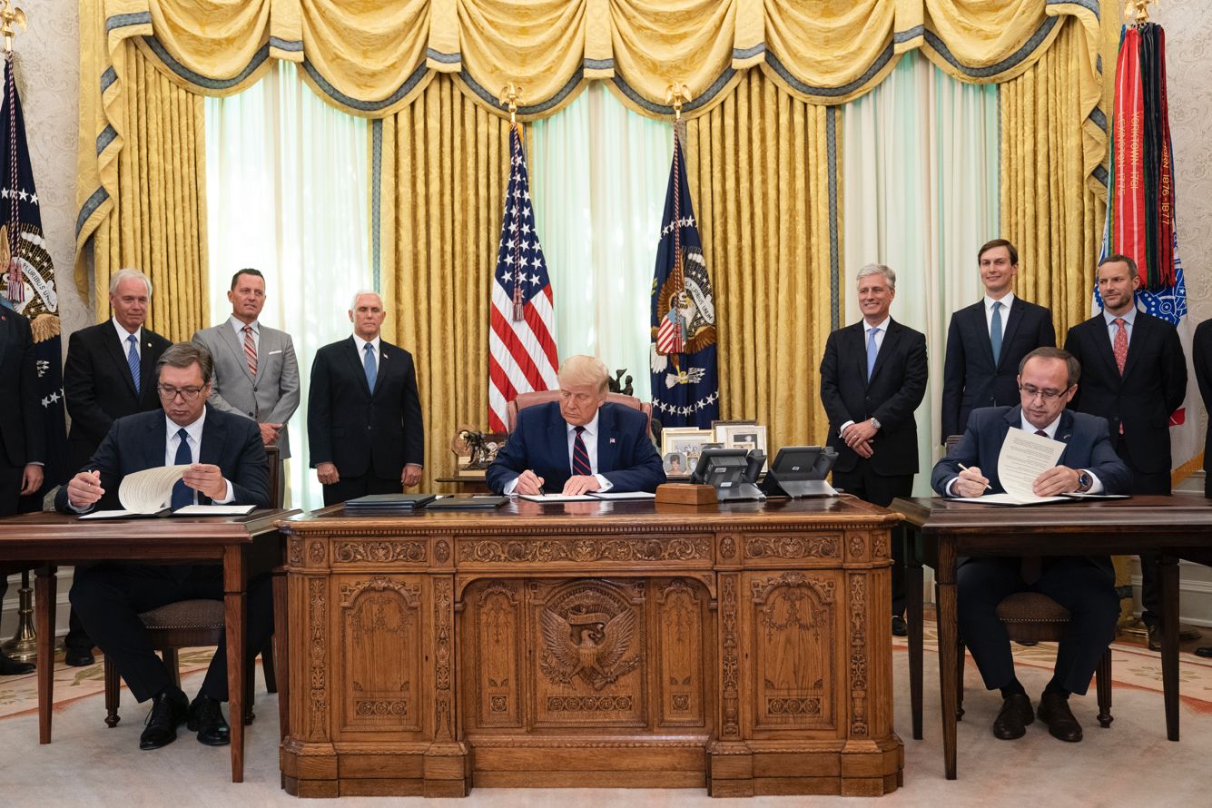 Президент Сербии Александр Вучич и премьер-министр Косово Авдулла Хоти провели двухдневные переговоры в Вашингтоне при посредничестве Дональда Трампа, по итогам которых стороны подписали соглашение об экономическом сотрудничестве, которое в Белом доме назвали «историческим прорывом».