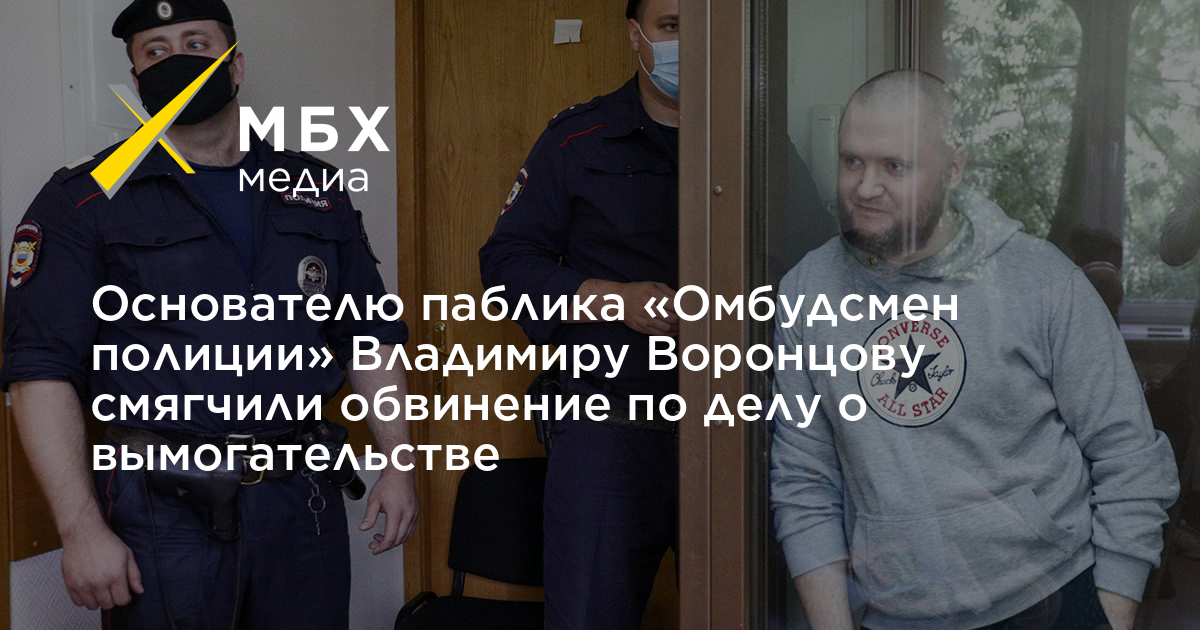Основателю паблика «Омбудсмен полиции» Владимиру Воронцову смягчили обвинение по делу о вымогательстве, убрав из него квалифицирующий признак «группа лиц». Об этом сообщил «МБХ медиа» адвокат Михаил Мушаилов.