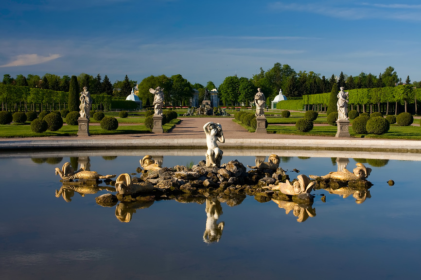 Верхний сад построен в начале XVIII века по рисункам Петра Великого. Он занимает 14 гектаров