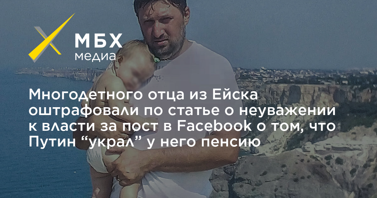 Многодетного отца из Ейска оштрафовали по статье о неуважении к власти за пост в Facebook о том, что Путин «украл» у него пенсию