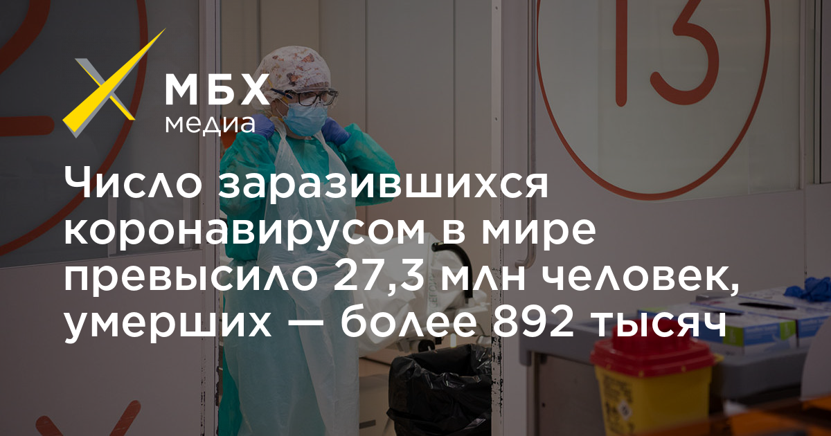 Число заразившихся коронавирусом в мире превысило 27,3 млн человек, умерших — более 892 тысяч