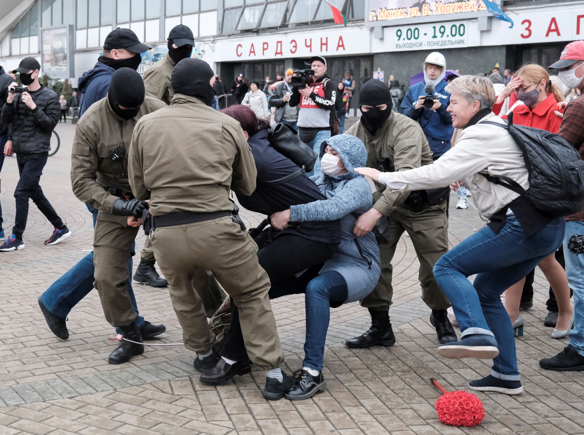 БелаПАН / Reuters / Scanpix / LETA Вечером 8 сентября в центре Минска прошла акция солидарности с членом президиума координационного совета оппозиции Марией Колесниковой. Участников акции, в том числе пожилых женщин, жестко задерживали сотрудники ОМОНа, а также люди без опознавательных знаков в масках. Колесникову накануне похитили неизвестные, а утром стало известно, что она задержана на границе с Украиной. Соратники Колесниковой заявили, что ее силой хотели заставить покинуть Белоруссию, но на границе она порвала свой паспорт.