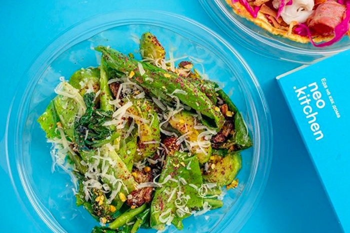Neo — самый новый проект формата доставки за 30 минут. Меню заметно отличается от предложений других сервисов: блюда здесь больше напоминают позиции в ресторанах. Можно заказать шакшуку, капрезе с ростбифом и чиа-пудинг.