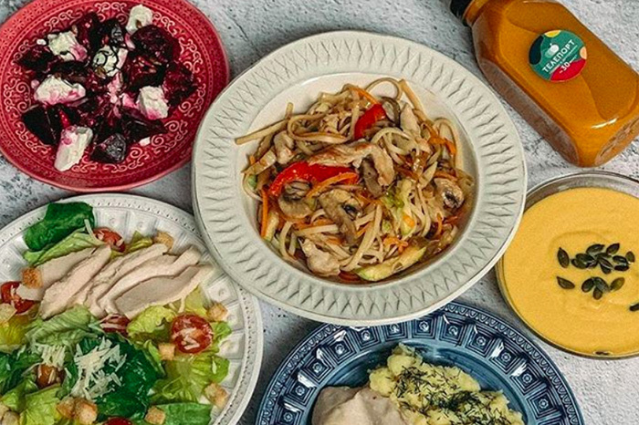 В меню «Готово» преимущественно простая еда — борщ, спагетти с котлетами. Но есть и такие блюда, как том ям и боул с креветками.