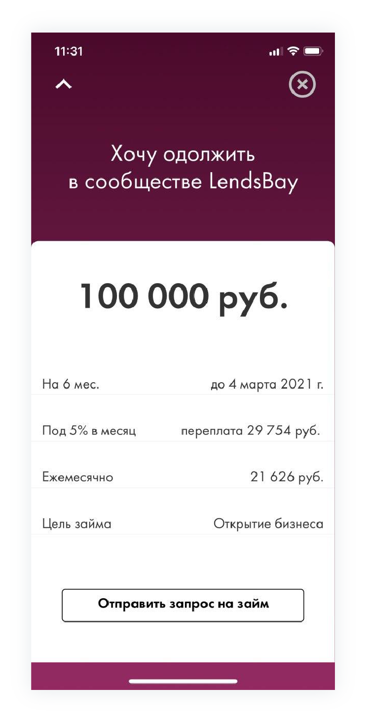 LendsBay пригодится тем, кто хочет взять деньги в долг, не обращаясь в банк. Например, если заемщику нужно 50 тысяч рублей на образование, на платформе он может выбрать нужную сумму и указать процент, который готов заплатить за пользование этими деньгами. Заявка размещается в приложении, и ее могут видеть частные инвесторы. То есть заемщик может быстро получить деньги без бюрократии и открытия счетов в банке. А инвестор — заработать.