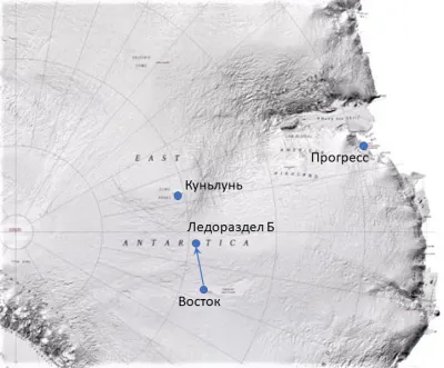 Одним из таких белых пятен является Ледораздел Б — обширная область в самом центре Антарктиды, примерно посередине между российской станцией Восток и китайской станцией Куньлунь. Последнее время на этот район всё чаще заглядываются ученые — гляциологи и палеоклиматологи — из разных стран. Дело в том, что одной из интереснейших задач в изучении Антарктиды (и одним из самых серьезных вызовов антарктической науки) является поиск древнейшего на планете льда возрастом не менее одного миллиона лет [2]. Этот лед расскажет нам о причинах среднеплейстоценового климатического перехода — изменения амплитуды и длительности основных климатических циклов на планете 0,8–1,2 млн лет назад [3].